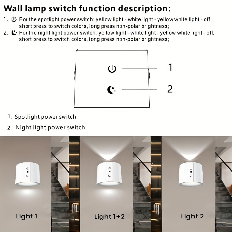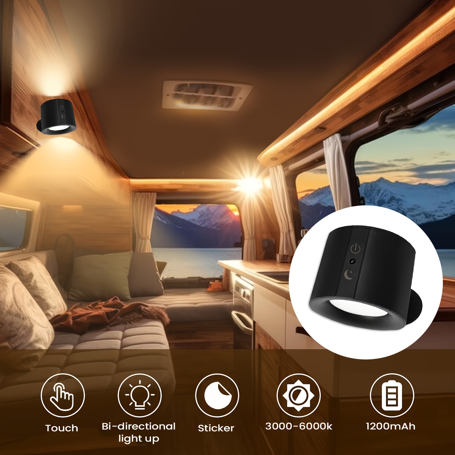 2pcs LED Double-Sided Magnetic Wall Lights, 360° Rotatable, USB Rechargeable, Three-Level Adjustable 3000-4500-6000K, 1200mAh Bedside Lamp, Car Interior Lighting, Suitable for Living Room, Bedroom, Hallway, Bedside, Indoor Lighting, Modern Wall