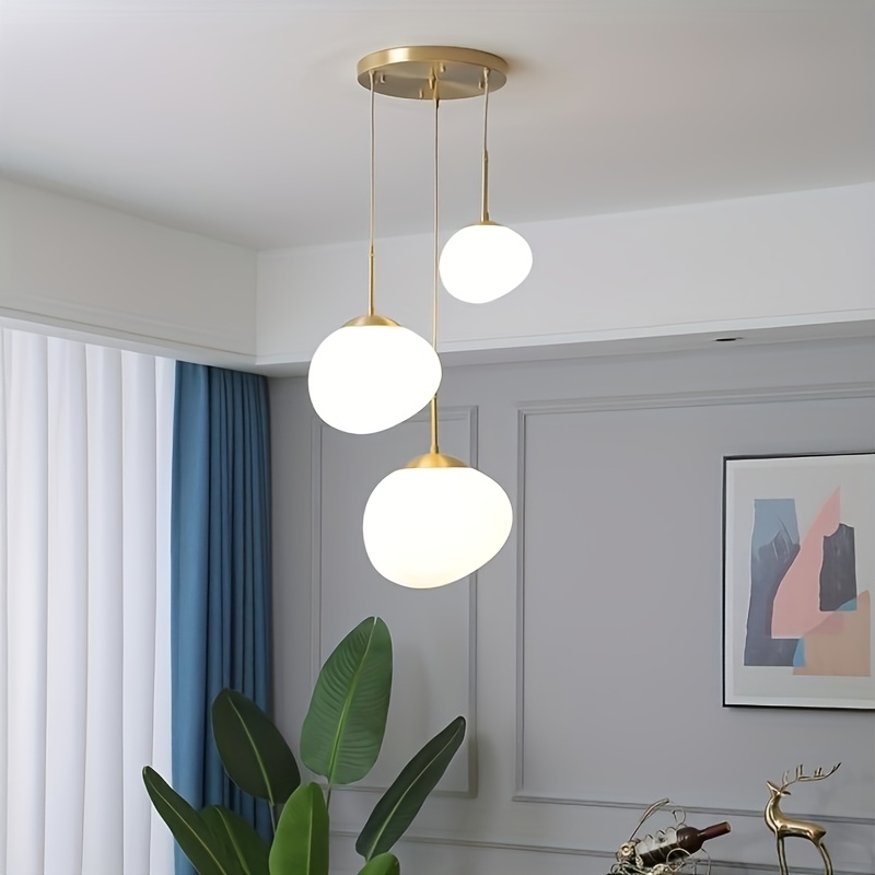 Modern Simple Three-head Irregular Frosted White Chandelier, 3 E26 Lamp Heads, Suitable for Dining Room, Living Room
